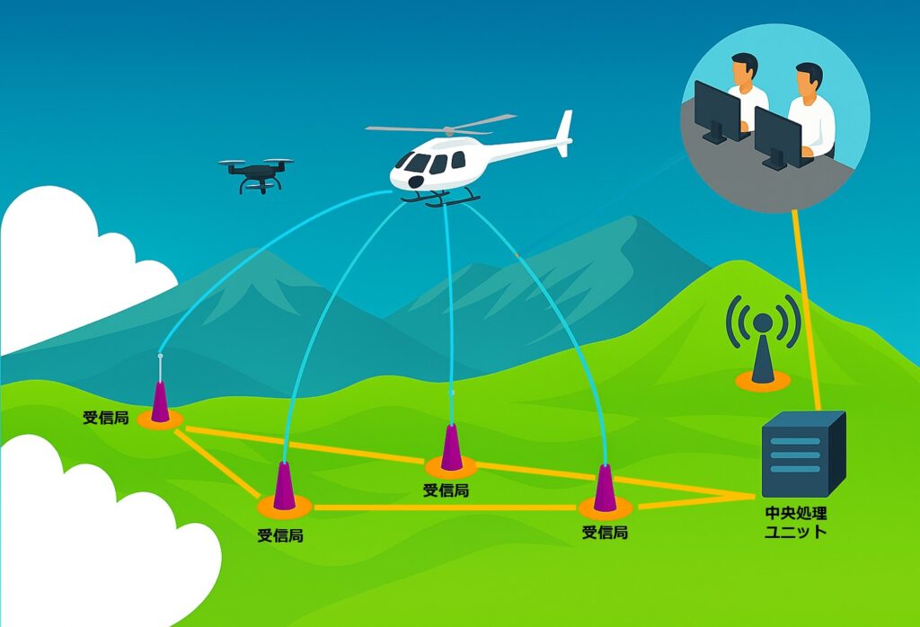レーダーやADS-Bとは異なり、送信側に特別な装置を必要とせず、受信側の構成のみで測位が可能なため、ADS-B非搭載機や軍用機などの監視にも有効です。